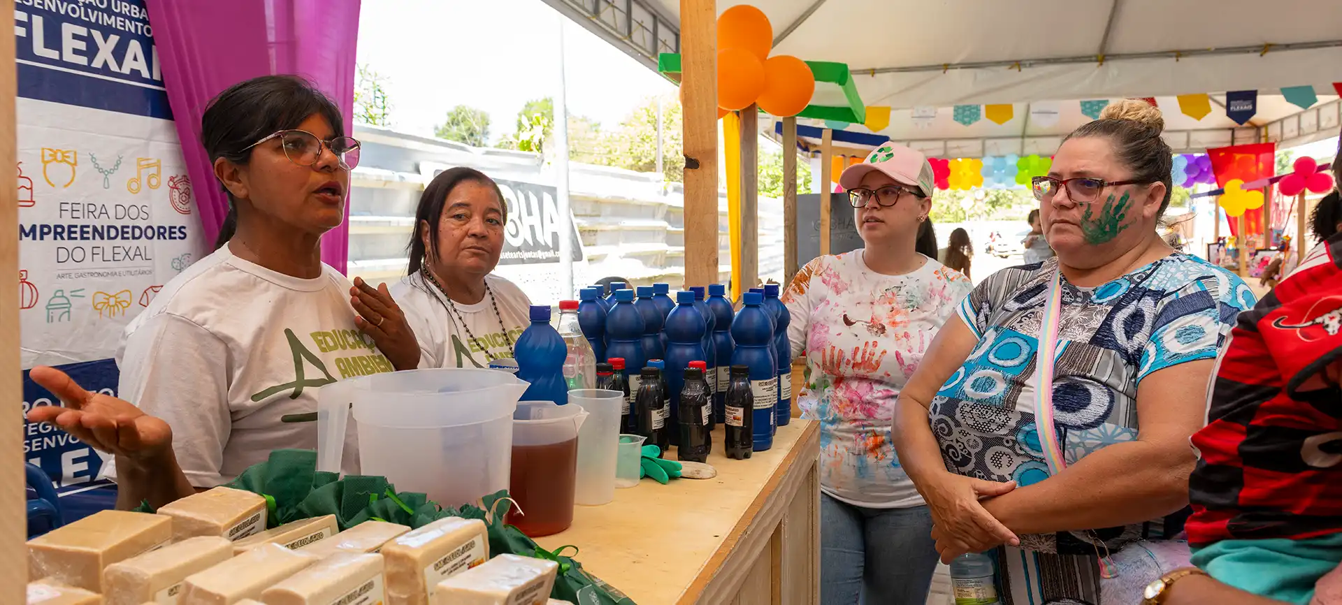 Entre os expositores da Feira, as palavras mais recorrentes eram superação e crescimento. Passados pouco mais de um ano desde a primeira edição da Feira, cada estande revelava marcas e negócios mais amadurecidos. A maioria participou de cursos e mentorias oferecidos pelo programa de capacitação, Aprendi no Flexal , desenvolveu novas habilidades, melhorou técnicas já conhecidas e adquiriu ferramentas para aprimorar seus negócios, ou mesmo descobrir novas oportunidades.