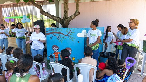 A parceria com o poder público garantiu uma agenda lúdica e educativa voltada para a conscientização ambiental. A Autarquia de Desenvolvimento Sustentável e Limpeza Urbana (Alurb) ensinou a criançada a produzir brinquedos sustentáveis reutilizando materiais comuns em qualquer casa, como papelão, tampas de garrafas, potinhos de plástico, entre outros. Por meio do teatro com bonecos, a mensagem sobre o papel de cada um nos cuidados com o meio ambiente e a lagoa também foi ensinada.