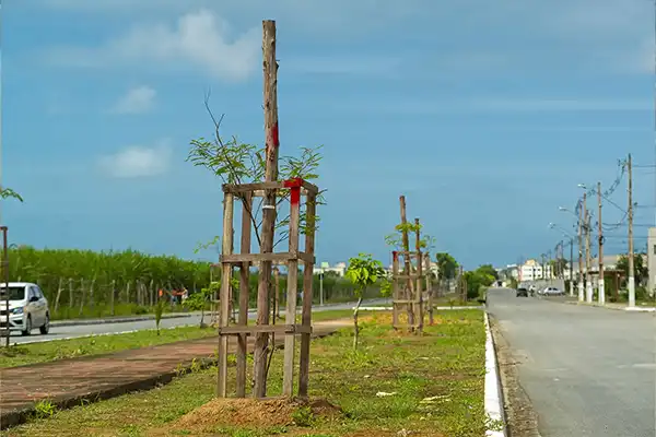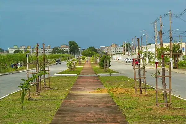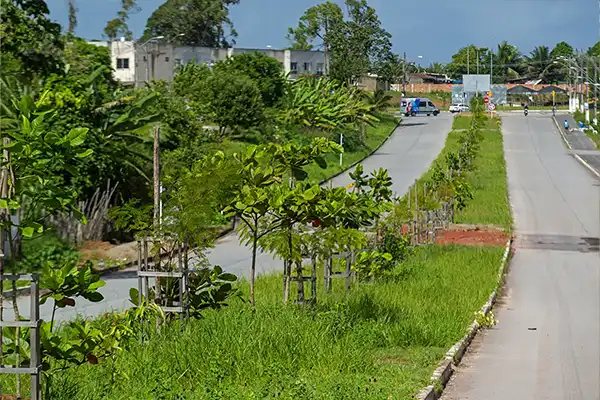 Planting trees to create new wooded areas along Maceió’s public highways. The action is integrated with projects to upgrade the squares and public spaces in neighborhoods that received the population affected by the ground subsidence.