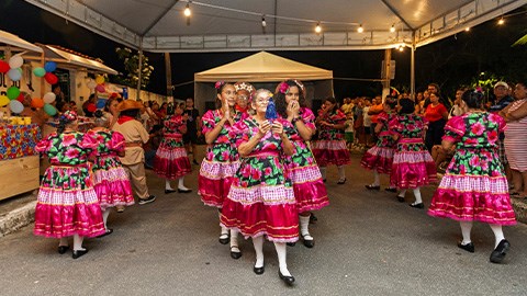 The Cultural Support Program also encourages grassroots folk culture groups from neighborhoods affected by relocation, including traditional dance groups, such as coco de roda, quadrilhas, guerreiro, and pastoril. Launched in December 2023, the program supports these groups by providing resources such as choreographers, costume designers, musicians, costumes, instruments, sound equipment, and operational assistance for rehearsals and transportation.