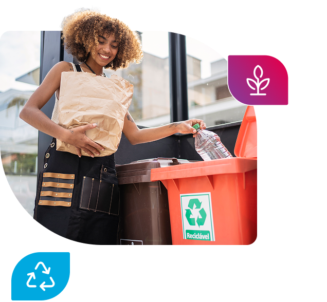 Soluções com conteúdo reciclado que contribuem para a eliminação de resíduos - principalmente plásticos. Promovemos a circularidade no seu negócio, permitindo o uso contínuo de materiais, incluindo o carbono proveniente de resíduos.