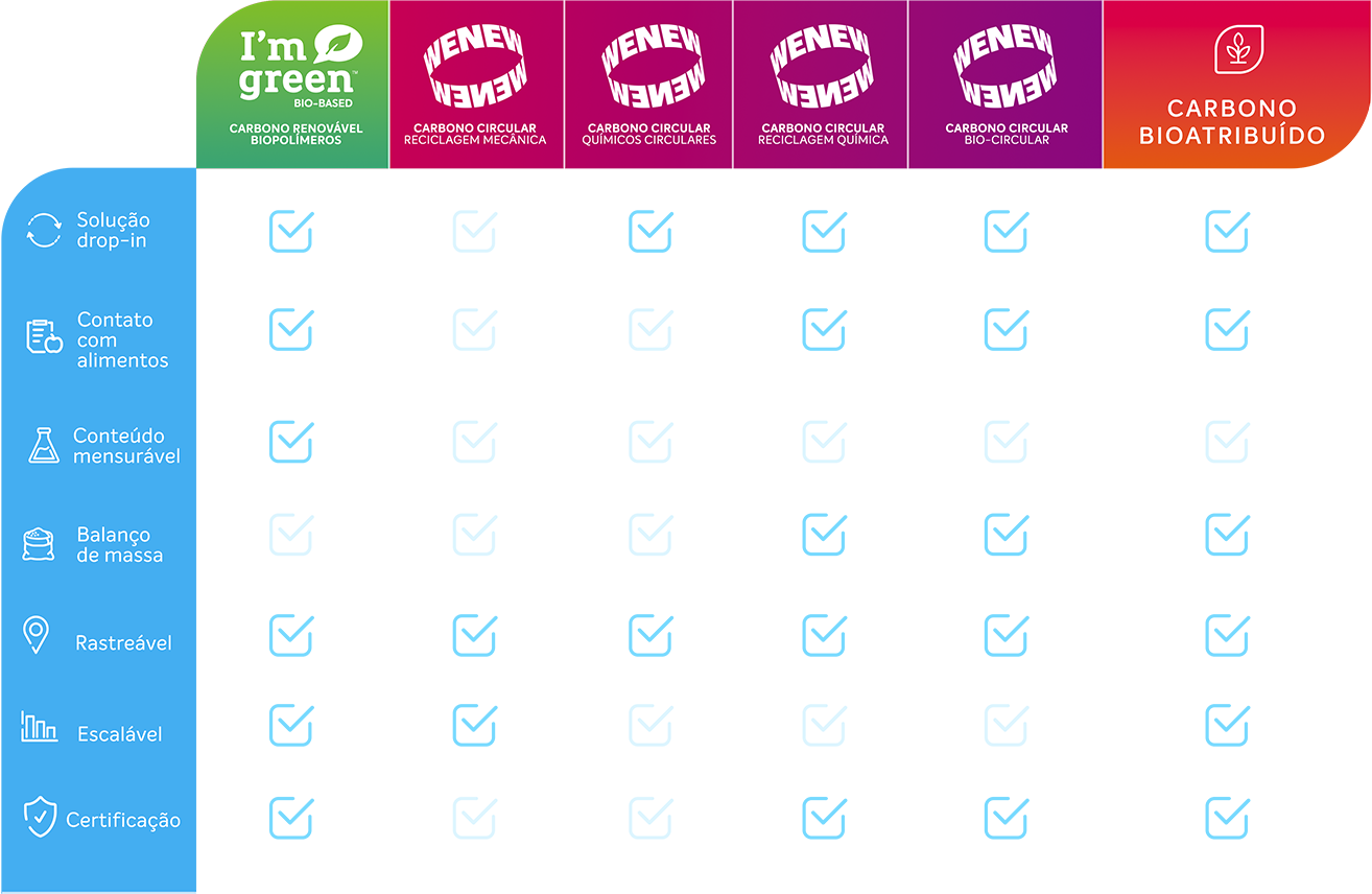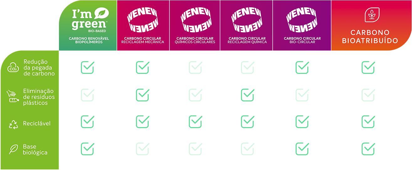 Conteúdo de origem renovável ou reciclado é atribuído por meio de balanço de massa.